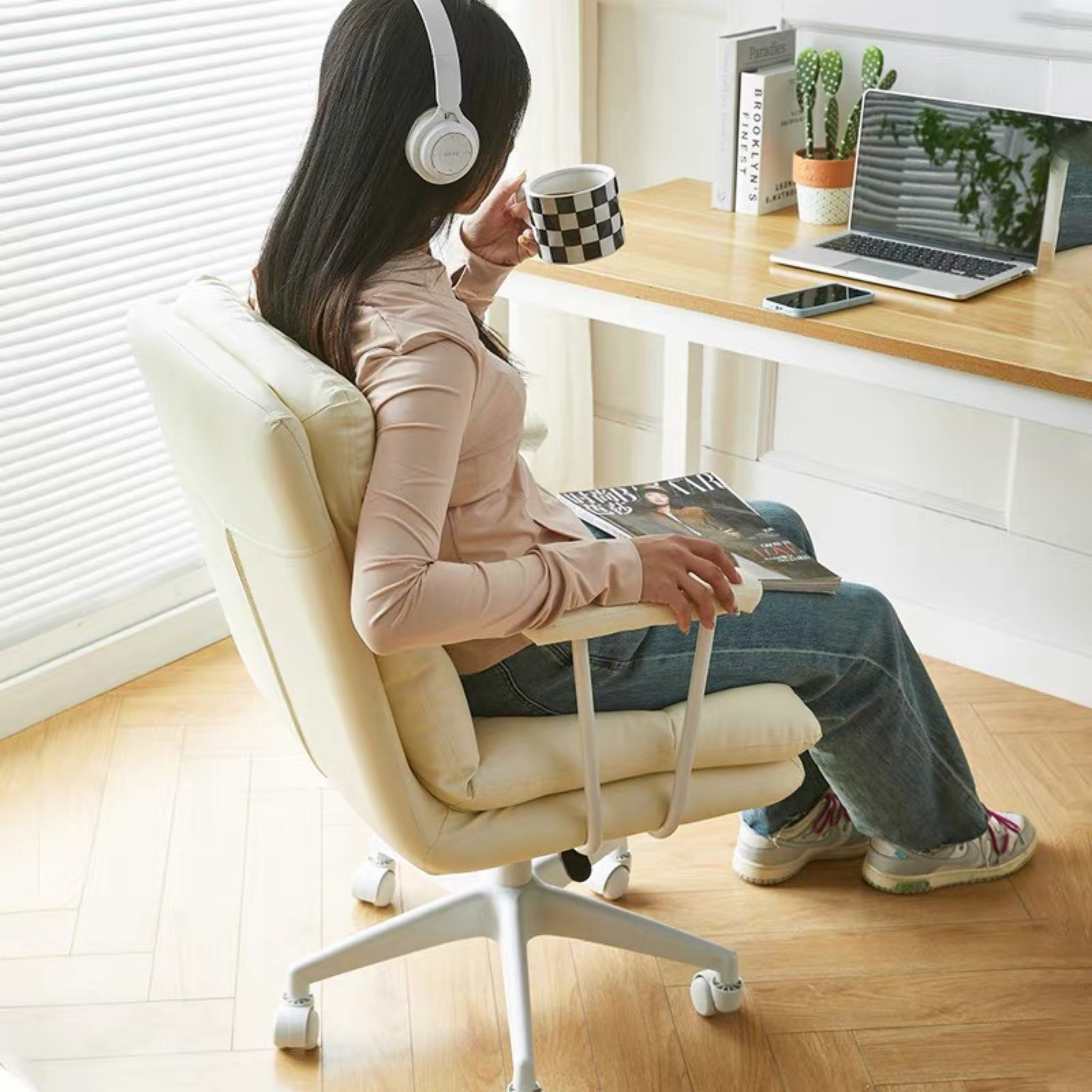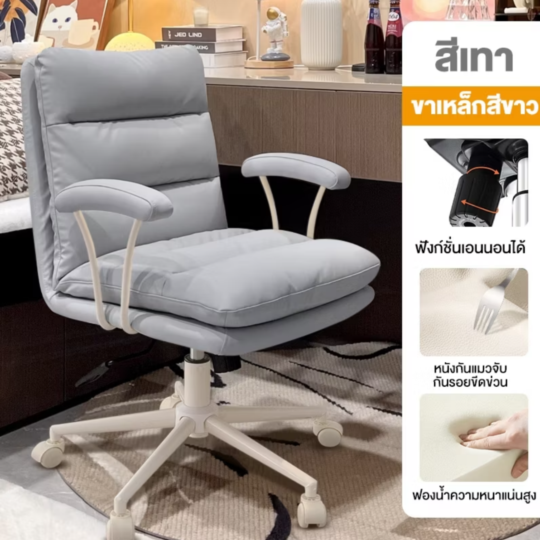 เก้าอี้ทำงาน มินิมอล CH038 พนักพิงเอนได้ ปรับองศาตามสรีระ ฟองน้ำความหนาแน่นสูง รองรับแรงกดได้ดี เบาะหนังกันแมวจับ กันรอยขีดข่วน ปรับระดับความสูงได้ตามสรีระ ล้อหมุน 360° เคลื่อนย้ายสะดวก ขาเหล็กสีขาว แข็งแรง ทนทาน ✅✅พร้อมส่ง✅✅